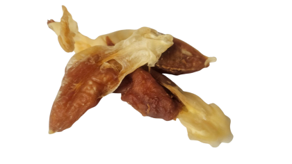 :Натурално лакомство от сушени заешки уши (понякога с козина), подходящо за дъвчене и като дълготрайна награда. По своята същност те са нискомаслени, богати на протеин и естествено почистват зъбите чрез дъвчене.