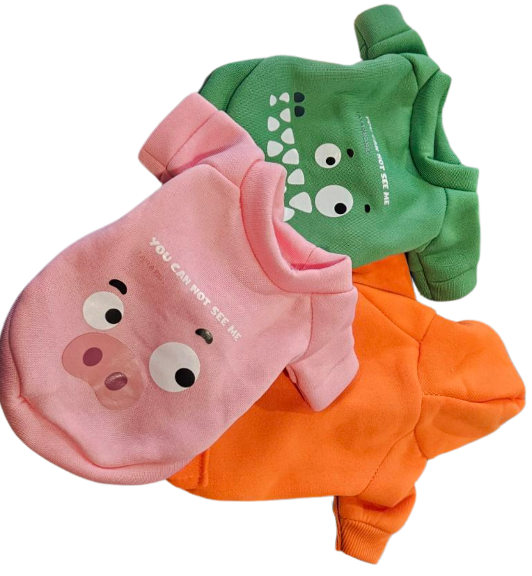 :Лек и удобен пуловер за домашни любимци с весел карикатурен принт, подходящ за всички сезони. Изработен е от мек и еластичен плетен полиестер, който осигурява комфорт, добра вентилация и свобода на движение. Моделът е създаден специално за малки породи...