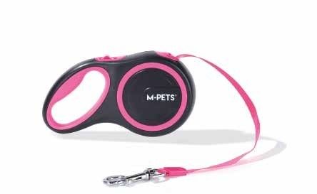 :M-PETS Liberty е автоматичен повод с ергономична дръжка, здрава найлонова лента и 360° въртящ се карабинер, осигуряващ контрол и комфорт при разходки на кучета до 50 кг.
