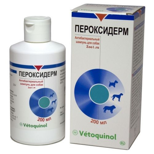 :Медицински шампоан за кучета при себорея, демодекоза, пиодермия, маласезия и инфектирани мазоли. Почиства и дезинфекцира кожата в дълбочина.