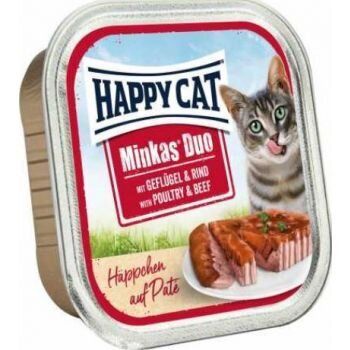 :Minkas Duo Poultry & Beef е беззърнест пастет за котки с месо от домашни птици и плътно говеждо.
