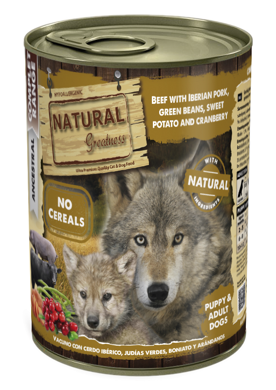 :Пълноценна консервирана храна за кученца, приготвена с висококачествено телешко и свинско месо, допълнено с бобчета. Формулата е създадена за правилен растеж и развитие, като осигурява ценни протеини и витамини.