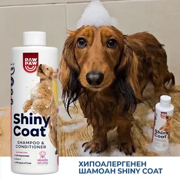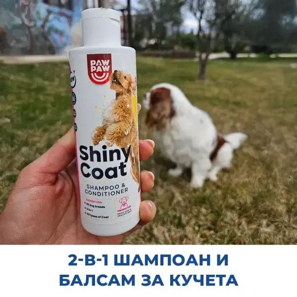 :Нежен шампоан и балсам 2 в 1 за кучета, който почиства, подхранва и овлажнява, придавайки блясък и мекота на козината.