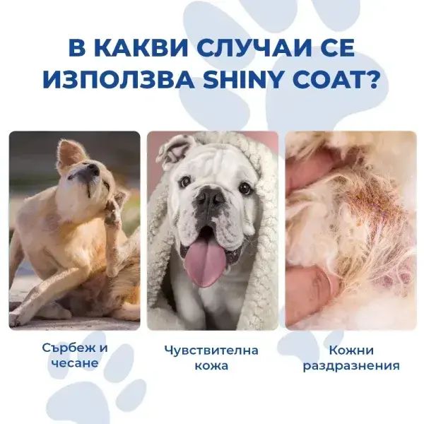 :Почиства и подхранва козината, овлажнява кожата, успокоява раздразненията и предотвратява сплъстяване.