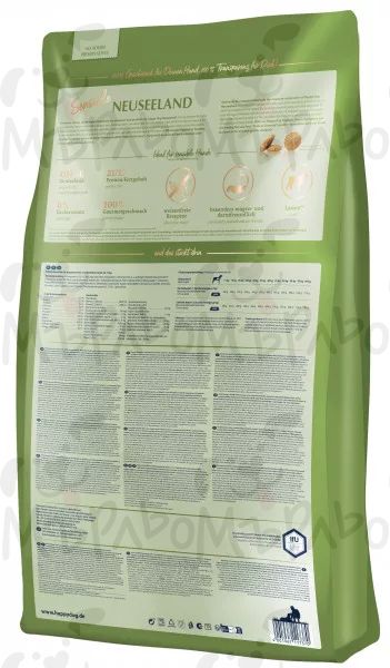 :Sensible New Zealand с агнешко, сьомга и екстракт от зеленоусти миди, с билки, ориз, за алергични и капризни кучета.