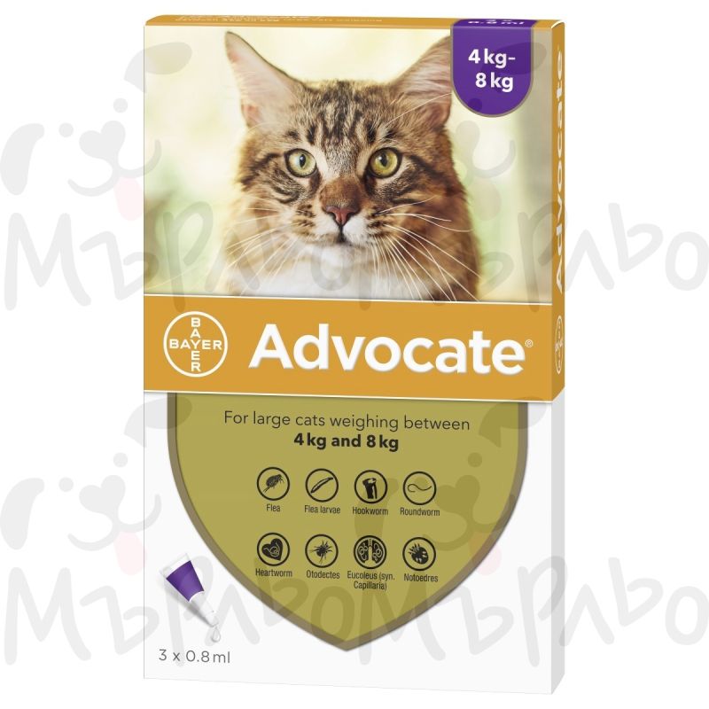 :Ветеринарномедицински продукт за външно приложение (spot-on) за котки с тегло от 4 до 8 кг. Предназначен за лечение и профилактика на външни и вътрешни паразити, включително бълхи, ушни кърлежи, гастроинтестинални нематоди и ларвни форми на дирофилария...