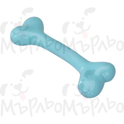 :Гумен кокал с ментов вкус, релефна повърхност за зъбна хигиена, идеален за дъвчене и игра.