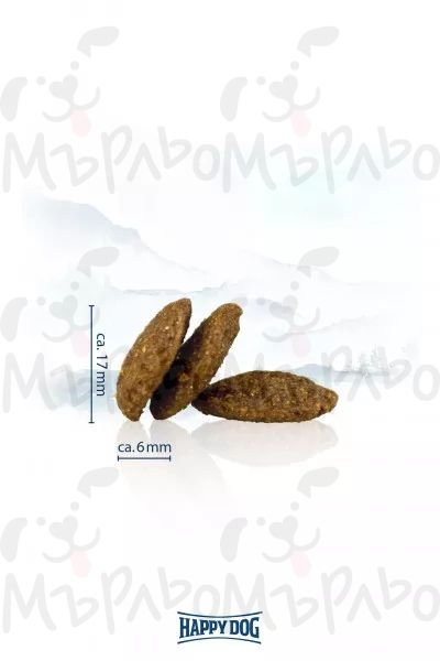 :Суров протеин 21,0%, сурови мазнини 10,0%, сурови влакнини 2,5%, сурова пепел 5,5%, калций 1,0%, фосфор 0,75%, натрий 0,35%, магнезий 0,08%, калий 0,5%, омега-6 мастни киселини 3,0%, омега-3 мастни киселини 0,3%.