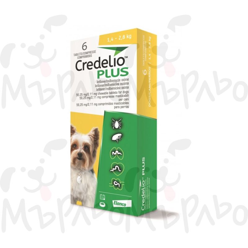 Credelio Plus е високоефективен ветеринарен продукт за малки кучета с тегло от 1.4 до 2.8 кг, който осигурява едновременна защита срещу кърлежи, бълхи и чревни паразити (червеи). Съдържа две активни вещества – лотиланер и милбемицин оксим, които гарантират широкоспектърно действие и лесно приложение благодарение на овкусената таблетка за дъвчене.