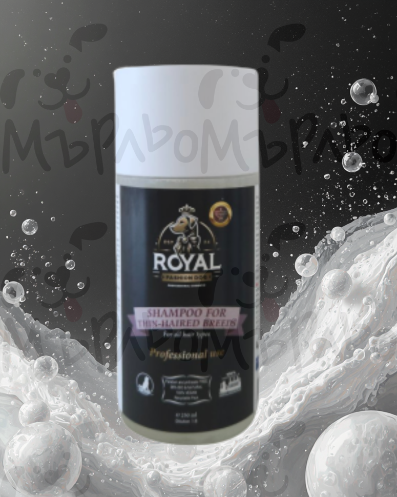 Royal Fashion Dog – Шампоан за тънка козина е концентриран шампоан, разработен за професионална употреба при козметични процедури и груминг на кучета с фина, слаба или чуплива козина. Формулата е създадена да осигури нежно, но ефективно почистване и пълно възстановяване на структурата на косъма.