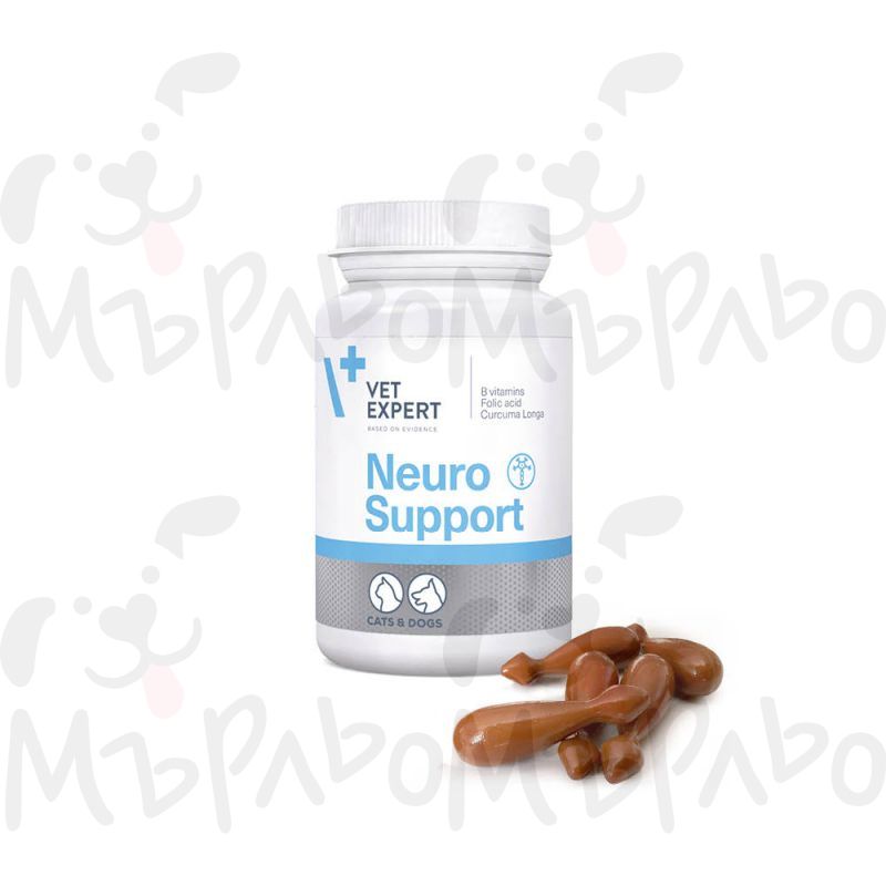 Neuro Support / Невро Суппорт е специализирана хранителна добавка, създадена да подпомогне здравето и функцията на нервната система при кучета и котки. Идеален избор за възрастни животни или такива, които проявяват признаци на когнитивни нарушения, неврологични дефицити или симптоми, свързани със стареенето.