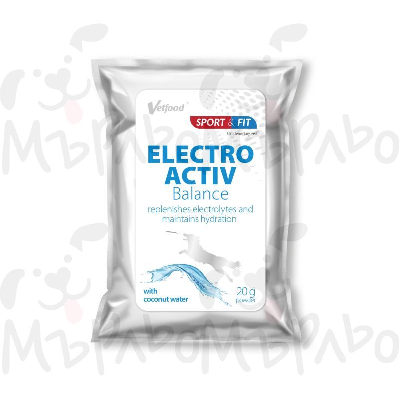 ElectroActiv Balance е предназначен за употреба за предотвратяване на дехидратация и помага за поддържане на баланса на течности и електролити в тялото на животното. Смесен с вода, той създава изотоничен разтвор. Добавянето на глюкоза повишава усвояването на натрий и вода.