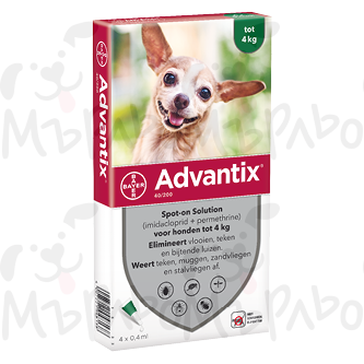 Адвантикс спот-он куче до 4 кг 4 пипети Адвантикс спот-он за кучета до 4 кг