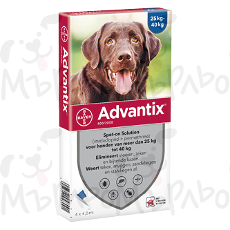 Advantix® Spot-on е ектопаразитицид за локална употреба, съдържащ imidacloprid и permethrin. Тази комбинация действа, като инсектицид, акарицид и репелент. Imidacloprid e ефективен срещу възрастни бълхи и всички ларвни стадии при бълхите.