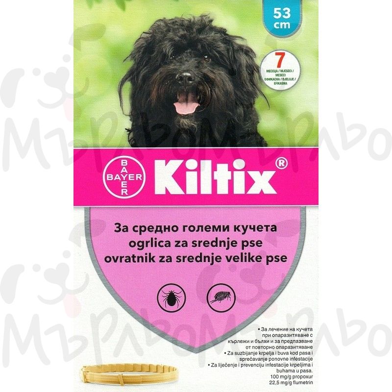 KILTIX на Bayer е създадена специално за големи породи кучета, които прекарват време на открито и са изложени на висока степен на паразитно натоварване. Със своето продължително действие от 7 месеца, тази противопаразитна каишка предоставя цялостна защита срещу бълхи и кърлежи – както възрастни, така и ларвни форми.